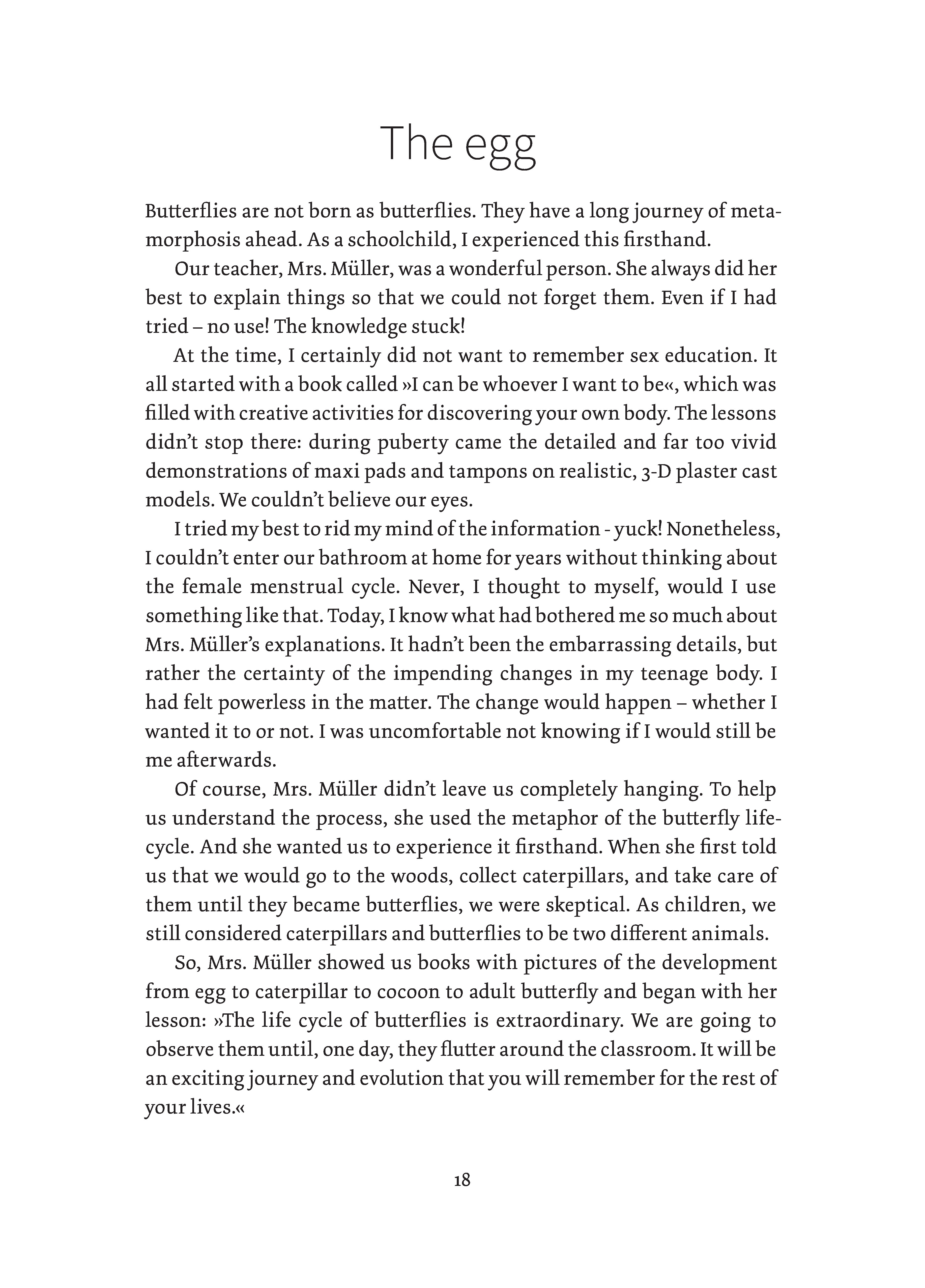 Personal development is a growth process similar to the metamorphosis of a butterfly. Emerge from your childhood as a caterpillar, discover what you really want in the cocoon, and take responsibility for your life. Let go of the past and open yourself up to new perspectives. Learn to feel vibrant and free like a butterfly, to flutter your wings, and to lead a more confident and fulfilled life! »YOUR METAMORPHOSIS« is more than a self-help book. You can pick it up again and again, refer to its tips and activities, and use it as a personal workbook. Write in it, make notes, and keep it by your side during your transformation. With your purchase, you are making a generous donation to my school project in Kenya, which covers school costs for children there. Your contribution gives them an education, the opportunity to learn a profession, and the chance to live a good life.